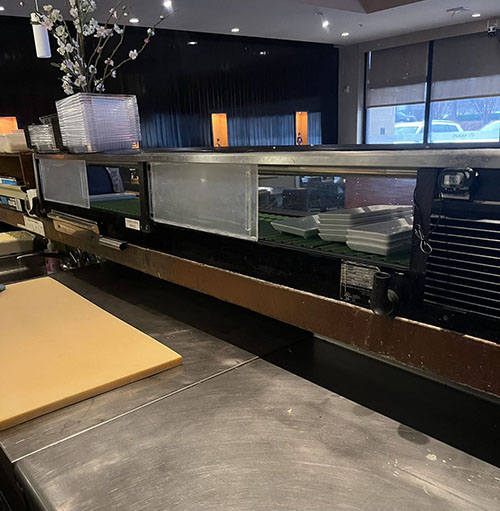 洗左边寿司展示柜